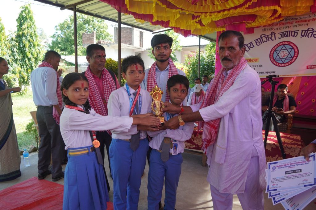 प्रतियोगितामा प्रथम, दोस्रो, तेस्रो र सान्त्वना स्थान ल्याएको विद्यालयलाई शुक्रवार एक समारोहका बीच प्याब्सनले पुरस्कार वितरण गरेकाे अध्यक्ष महतोले जानकारी दिनुभयो । हाजिरी जवाफका विजेता स्कुल र सहभागी विद्यार्थीहरुलाई शिल्ड, प्रमाणपत्र वितरण प्रमुख अतिथि, विशिष्ट अतिथि र अतिथिहरुकाे हातबाट वितरण गरिएकाे प्याब्सनकाे नगर सचिव रामसिठ महताेले जानकारी दिनुभयाे ।