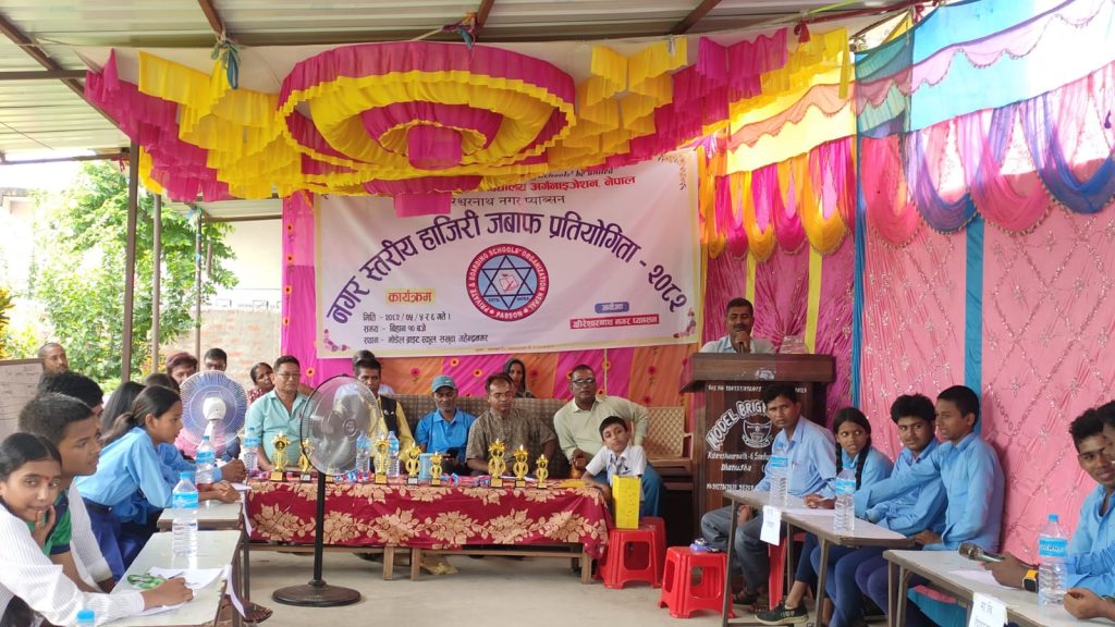 हाजिर जवाफ प्रतियोगिता क्षीरेश्वरनाथ नगरपालिका ६ सखुवा बजार नजिक माेडेल ब्राईट स्कुलमा आयाेजना गरिएकाे थियाे । साे अवसरमा स्कुलका विद्यार्थीहरुद्वारा साँस्कृतिक र नृत्य कार्यक्रम गरिएकाे थियाे ।